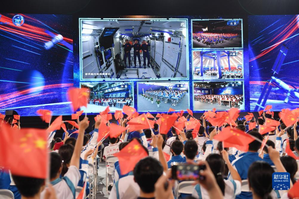 新華社北京9月21日電 9月21日下午,“天宮課堂”第四課在中國空間站開講,新晉“太空教師”景海鵬、朱楊柱、桂海潮為廣大青少年帶來一場精彩的太空科普課,這是中國航天員首次在夢(mèng)天實(shí)驗(yàn)艙內(nèi)進(jìn)行授課。