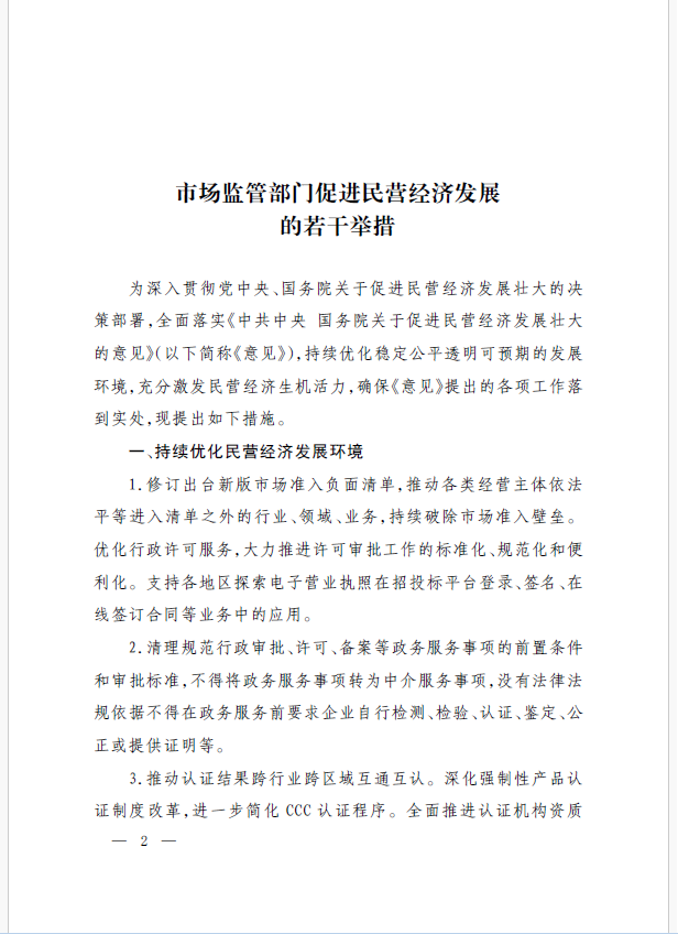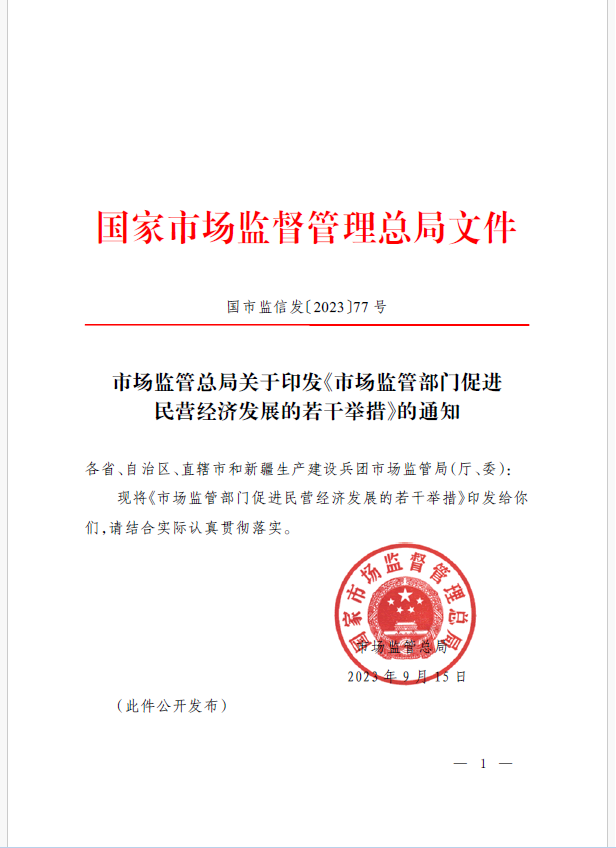 9月18日,市場(chǎng)監(jiān)管總局正式發(fā)布《市場(chǎng)監(jiān)管部門(mén)促進(jìn)民營(yíng)經(jīng)濟(jì)發(fā)展的若干舉措》。這是7月14日《中共中央 國(guó)務(wù)院關(guān)于促進(jìn)民營(yíng)經(jīng)濟(jì)發(fā)展壯大的意見(jiàn)》出臺(tái)以來(lái),市場(chǎng)監(jiān)管部門(mén)貫徹落實(shí)黨中央、國(guó)務(wù)院決策部署出臺(tái)的制度舉措,對(duì)提振民營(yíng)經(jīng)濟(jì)發(fā)展信心,依法規(guī)范和引導(dǎo)民營(yíng)資本健康發(fā)展具有重要意義。
