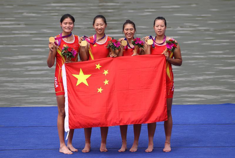 最后沖刺階段,中國隊繼續(xù)保持領(lǐng)先位置,日本隊反超越南上升到了第2名。最終,中國隊以6分42秒03的成績率先沖過終點,拿下了該項目的金牌。