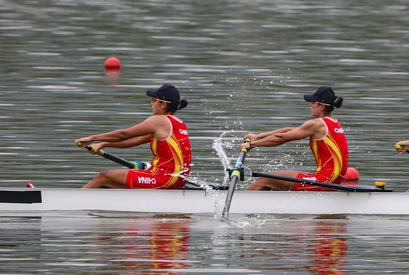 比賽開始,中國隊出發(fā)槳頻偏低,起步不快,越南隊處在領(lǐng)先位置。500米計時點處,越南隊以1分37秒64領(lǐng)先,中國隊以1分38秒45排在第2名。500米過后,越南隊后勁不足,槳頻迅速下降,中國隊穩(wěn)扎穩(wěn)打,實現(xiàn)反超。在通過1000米計時點處時,中國隊以3分18秒37排名第1位,領(lǐng)先第2名越南隊超過了2秒。1000米之后,中國隊優(yōu)勢逐漸明顯,并不斷擴大。1500米計時點處,中國隊以5分00秒38已領(lǐng)先越南隊超過一條艇身長度的距離,優(yōu)勢接近5秒。
