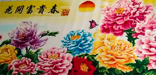 去年下半年,楊波萌生了做一件十字繡工藝品的想法。他便在網(wǎng)上購買了所需的各色水鉆36萬8千8百顆以及粘和劑、細吸管等工具。1顆水鉆約2毫米,相當(dāng)于小米粒大小。業(yè)余時間,楊波就用小細管吸住水鉆沾上專用膠填入到畫好的網(wǎng)格內(nèi),按照網(wǎng)格的顏色、形狀,一顆一顆地填入。經(jīng)過51天的專心致志,一件《花開富貴春》十字繡作品出世了。楊波說:“做這件十字繡需要耐心、細心和專心,也考驗恒心。做好后寄到老家,老婆看后夸道‘厲害!也挺有耐心’。”