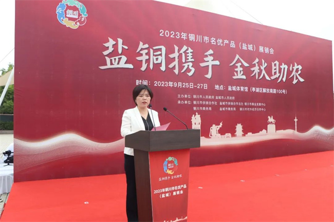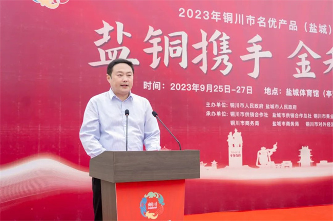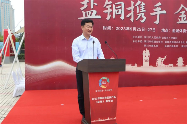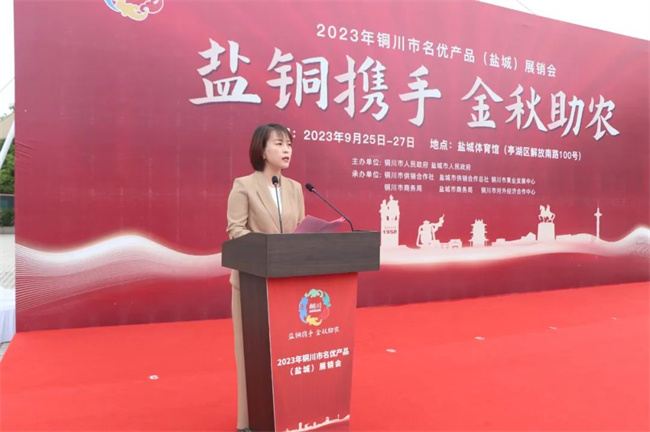 9月25日上午,由銅川市人民政府、鹽城市人民政府主辦,銅川與鹽城市兩地供銷社、商務(wù)局、發(fā)改委和銅川市果業(yè)發(fā)展中心、銅川市對(duì)外經(jīng)濟(jì)合作中心等部門承辦的2023銅川市名優(yōu)產(chǎn)品(鹽城)展銷推介活動(dòng)在鹽城市體育館廣場(chǎng)開(kāi)幕。銅川市政府副秘書(shū)長(zhǎng)李轉(zhuǎn)妮、鹽城市政府辦公室副主任施赟之出席開(kāi)幕式并致辭;鹽銅兩市區(qū)縣供銷、商務(wù)、發(fā)改等部門以及鹽銅協(xié)作對(duì)口幫扶區(qū)縣相關(guān)領(lǐng)導(dǎo)、銅川在鹽掛職干部及企業(yè)代表等近200余人參加開(kāi)幕式;銅川市政府副秘書(shū)長(zhǎng)、鹽城對(duì)口幫扶銅川工作組組長(zhǎng)何成效主持開(kāi)幕式。