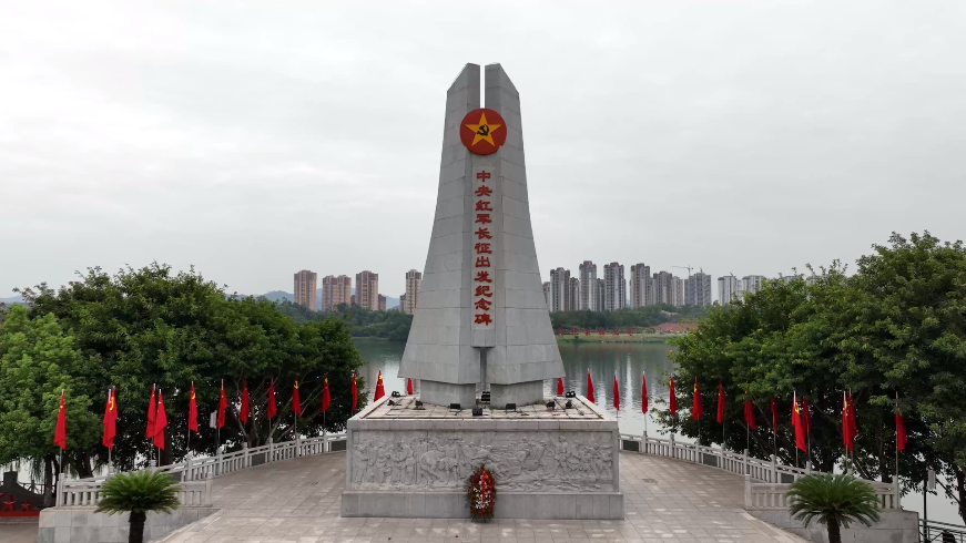 在位于江西省南部的于都縣,流淌千年的于都河奔流不息,中央紅軍長征出發(fā)紀(jì)念碑屹立河畔。