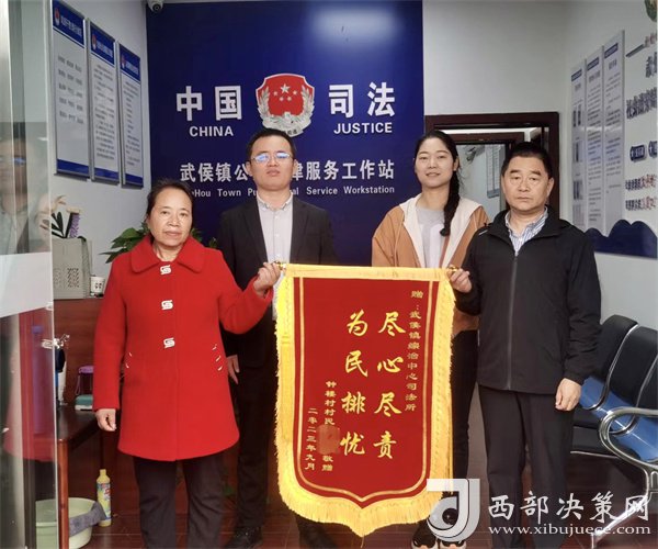 西部決策網(wǎng)訊 “太感謝你們了!謝謝你們熱心、專業(yè)、公正的調(diào)解,為我們解決了一大難題……”10月9日上午,武侯鎮(zhèn)鐘樓村民胡某向武侯司法所送來一面繡著“盡心盡責(zé),為民排憂”的錦旗,并向司法所工作人員表達(dá)了最誠摯的感謝。
