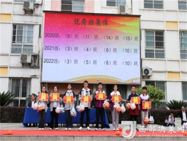 大會伊始,學(xué)校領(lǐng)導(dǎo)宣布了本次學(xué)校表彰先進集體、先進教師和優(yōu)秀學(xué)生的決定,宣讀了2022—2023學(xué)年度第二學(xué)期受學(xué)校表彰的各級各類先進集體、先進教師名單和各類優(yōu)秀學(xué)生名單。伴著輕快的樂曲,受表彰的師生有序走上領(lǐng)獎臺,接受校領(lǐng)導(dǎo)的頒獎并合影留念。
