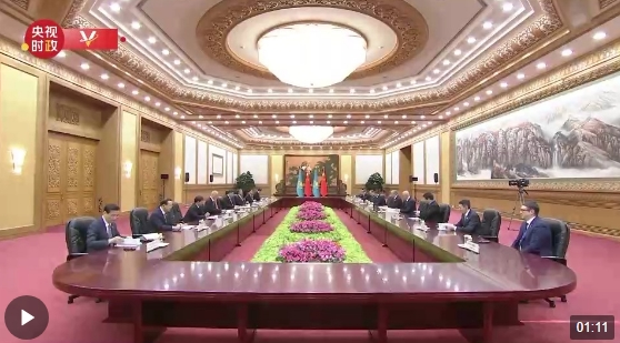 10月17日上午,國家主席習(xí)近平在人民大會堂會見來華出席第三屆“一帶一路”國際合作高峰論壇的哈薩克斯坦總統(tǒng)托卡耶夫。