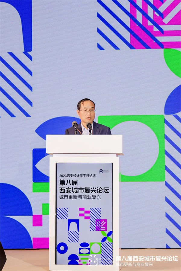 西安建筑科技大學(xué)副校長雷鵬在論壇致辭中表示,西安城市復(fù)興論壇已成功舉辦七屆,塑造了以城市更新為特色的城市級文化IP,本屆論壇圍繞“城市更新與商業(yè)復(fù)興”這個主題,這將會為城市更新、城市發(fā)展提供更多元化的思考和智慧,助推西安城市建設(shè)的高質(zhì)量發(fā)展。