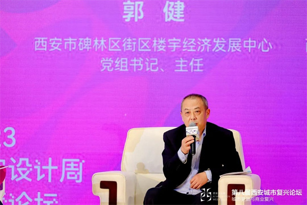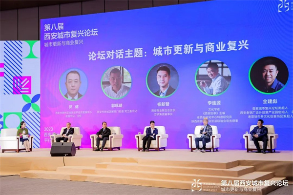 在論壇主題對話環(huán)節(jié),西安市碑林區(qū)街區(qū)樓宇經(jīng)濟(jì)發(fā)展中心黨組書記、主任郭健,西安市新城區(qū)解放門街道黨工委書記郭珮琦,西安商業(yè)聯(lián)合會會長、方欣集團(tuán)董事長楊新贊,文化學(xué)者、《西安舊事》主編李連源,西安城市復(fù)興論壇發(fā)起人、老鋼廠設(shè)計創(chuàng)意產(chǎn)業(yè)園創(chuàng)始人、總經(jīng)理、老菜場市井文化創(chuàng)意街區(qū)發(fā)起人全建彪等嘉賓就“城市更新與商業(yè)復(fù)興”主題展開對話交流。