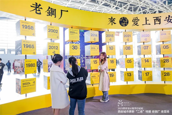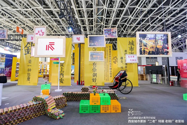 西安城市更新“二老”——老鋼廠設(shè)計創(chuàng)意產(chǎn)業(yè)園、老菜場市井文化創(chuàng)意街區(qū)特展,為城市更新項目課題提供實踐參照,圍繞城市更新主要產(chǎn)業(yè)鏈條環(huán)節(jié),從地標(biāo)項目改造進(jìn)程、城市更新學(xué)術(shù)研究與實踐、城市更新所代表的可持續(xù)發(fā)展理念的產(chǎn)業(yè)園區(qū)、文化創(chuàng)意街區(qū),以及城市更新所營造的城市新人文景觀和新消費場景,全方位展現(xiàn)城市更新所帶來的文化特色、產(chǎn)業(yè)賦能和創(chuàng)意內(nèi)容。