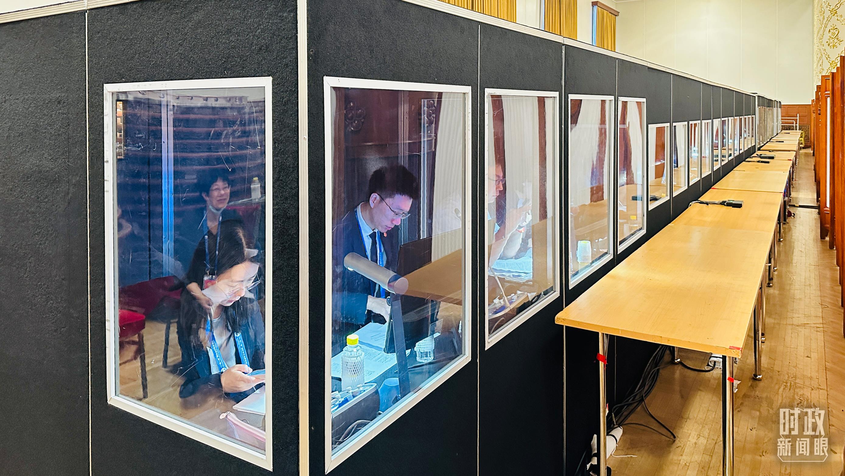 △開幕式現(xiàn)場的多語種同傳間。(總臺(tái)國廣記者時(shí)冉拍攝)