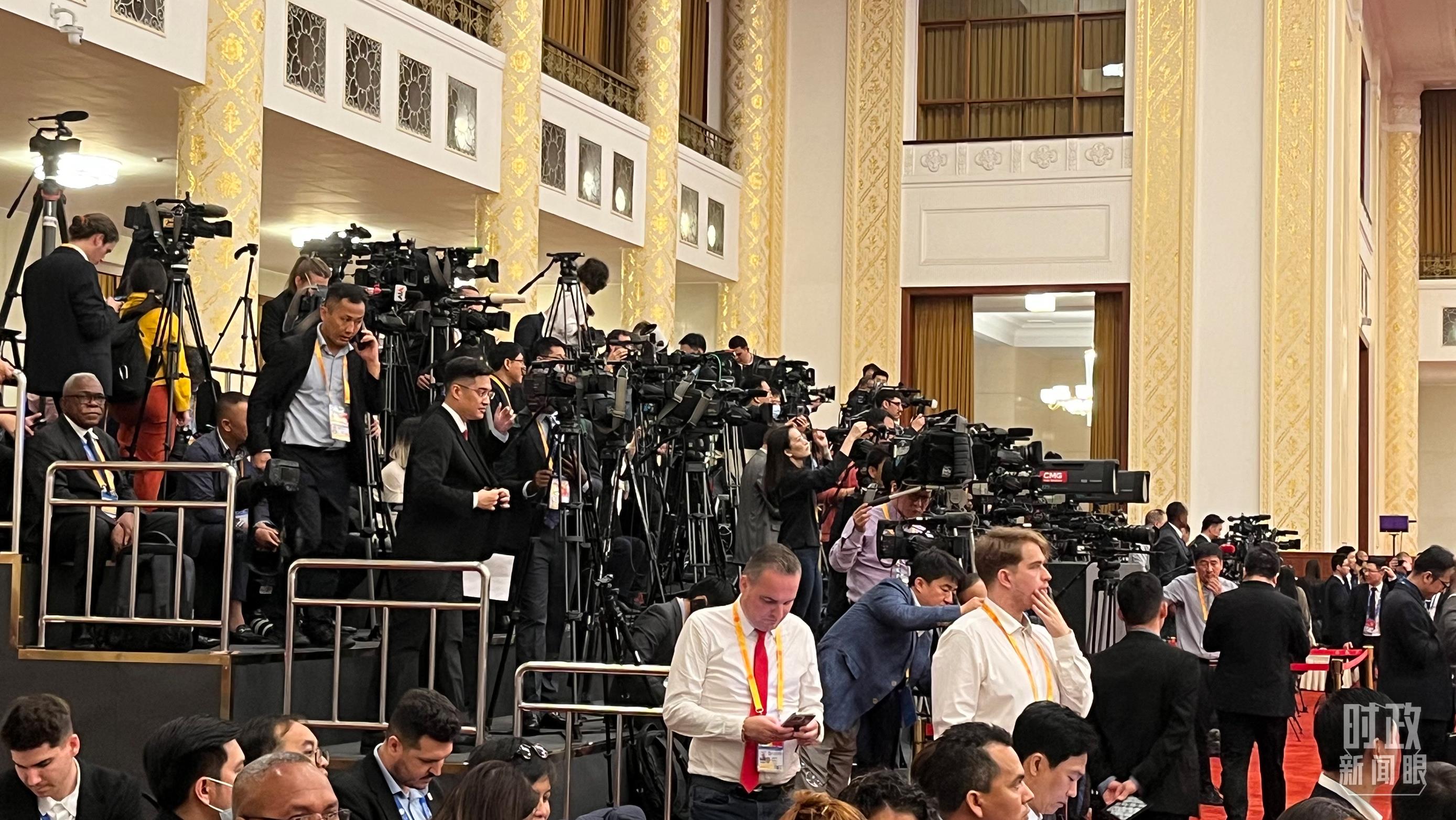 △現(xiàn)場報(bào)道開幕式的各國記者。(總臺(tái)央視記者金雨秋拍攝)