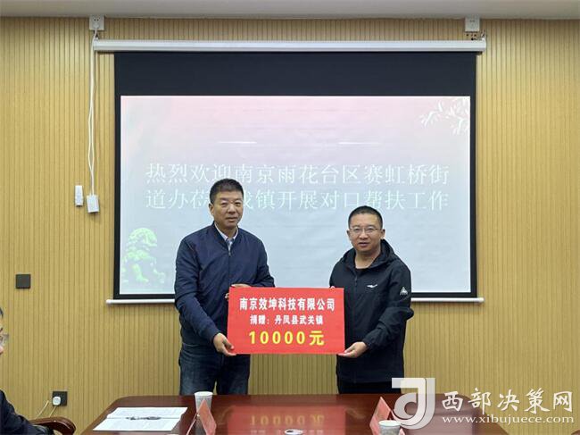 座談會(huì)上,丹鳳縣黨委副書(shū)記、鎮(zhèn)長(zhǎng)李昱澎匯報(bào)了全鎮(zhèn)鞏固脫貧攻堅(jiān)成果與鄉(xiāng)村振興有效銜接工作開(kāi)展情況,南京市雨花臺(tái)區(qū)賽虹橋街道與丹鳳縣武關(guān)鎮(zhèn)政府簽訂了2023年結(jié)對(duì)共建協(xié)議,南京效坤科技有限公司向武關(guān)鎮(zhèn)捐贈(zèng)了10000元鞏固銜接資金。