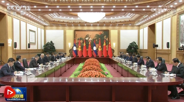 習(xí)近平強(qiáng)調(diào),堅(jiān)持黨的領(lǐng)導(dǎo),堅(jiān)持社會主義方向,是中老關(guān)系的本質(zhì)特征。中老兩黨要持續(xù)深化政治互信,提高執(zhí)政能力,加強(qiáng)政治、執(zhí)法安全等領(lǐng)域溝通和合作。要深挖中老鐵路潛力,以鐵路沿線開發(fā)為重點(diǎn),穩(wěn)步推進(jìn)中老經(jīng)濟(jì)走廊建設(shè),積極推進(jìn)區(qū)域聯(lián)通發(fā)展構(gòu)想,打造本地區(qū)“一帶一路”合作樣板。中方愿為老撾經(jīng)濟(jì)發(fā)展繼續(xù)提供力所能及的幫助,鼓勵更多中國企業(yè)赴老投資,進(jìn)口更多老撾優(yōu)質(zhì)農(nóng)產(chǎn)品,擴(kuò)大中老能源礦業(yè)等領(lǐng)域合作。明年老撾將擔(dān)任東盟輪值主席國,中方愿支持老方在地區(qū)和國際事務(wù)中發(fā)揮更大作用。