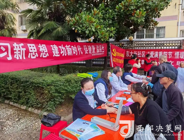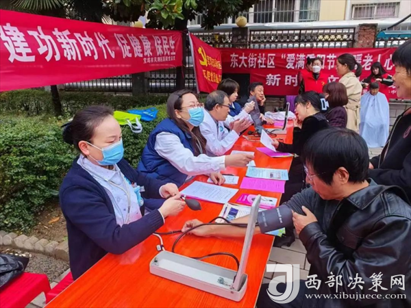 西部決策網(wǎng)訊(記者劉玉 韓宗憲 通訊員 盧智剛)金秋十月,丹桂飄香;歲歲重陽(yáng),今又重陽(yáng)。在重陽(yáng)節(jié)來(lái)臨之際,為大力弘揚(yáng)中華民族尊老、敬老、愛(ài)老、助老的傳統(tǒng)美德,持續(xù)深化“雙報(bào)到、雙服務(wù)、雙提升”工作,10月19日,寶雞市鳳翔區(qū)醫(yī)院醫(yī)技支部書記劉斐帶領(lǐng)黨員服務(wù)隊(duì)深入城關(guān)鎮(zhèn)東大街社區(qū)經(jīng)典莊園開(kāi)展健康義診活動(dòng)。