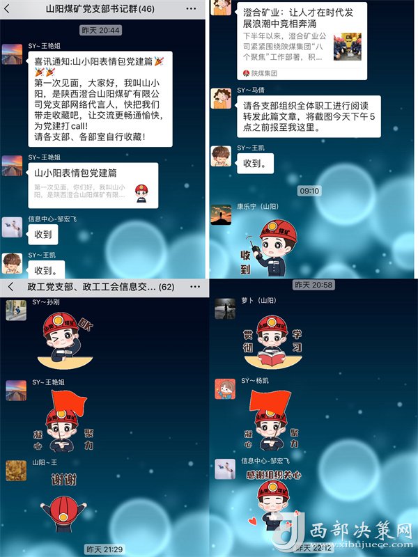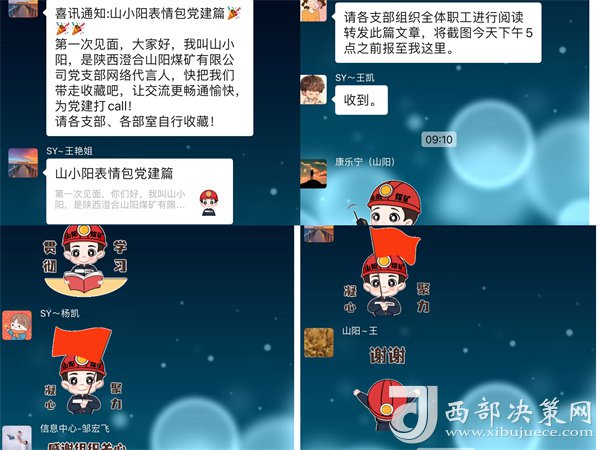 “這組表情包,是我們結(jié)合礦井黨支部標準化建設工作特點和實際情況而創(chuàng)新推出的,從表情包設計、上傳到上線經(jīng)過長達兩個月時間,它涵蓋了黨支部標準化日常工作的方方面面。”該公司黨群工作部副部長王艷介紹說。