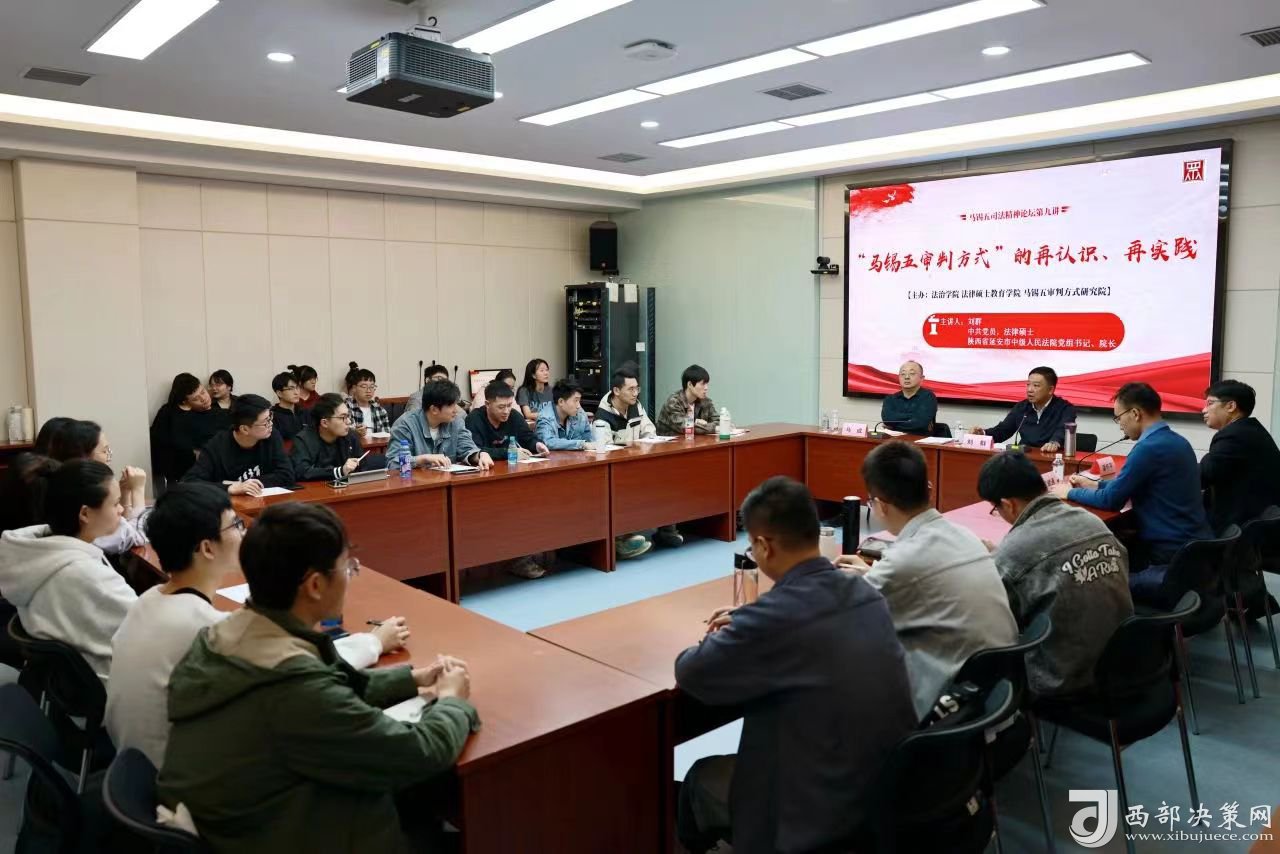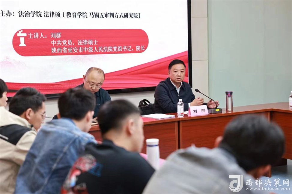 西部決策網(wǎng)訊 10月23日下午,延安市中級(jí)人民法院黨組書記、院長(zhǎng)劉群以“馬錫五審判方式再認(rèn)識(shí)、再實(shí)踐”為題作專題講座,與西北政法大學(xué)60多名法學(xué)研究生互動(dòng)交流。會(huì)場(chǎng)座無虛席,現(xiàn)場(chǎng)氛圍從講座一開始便逐步升溫。