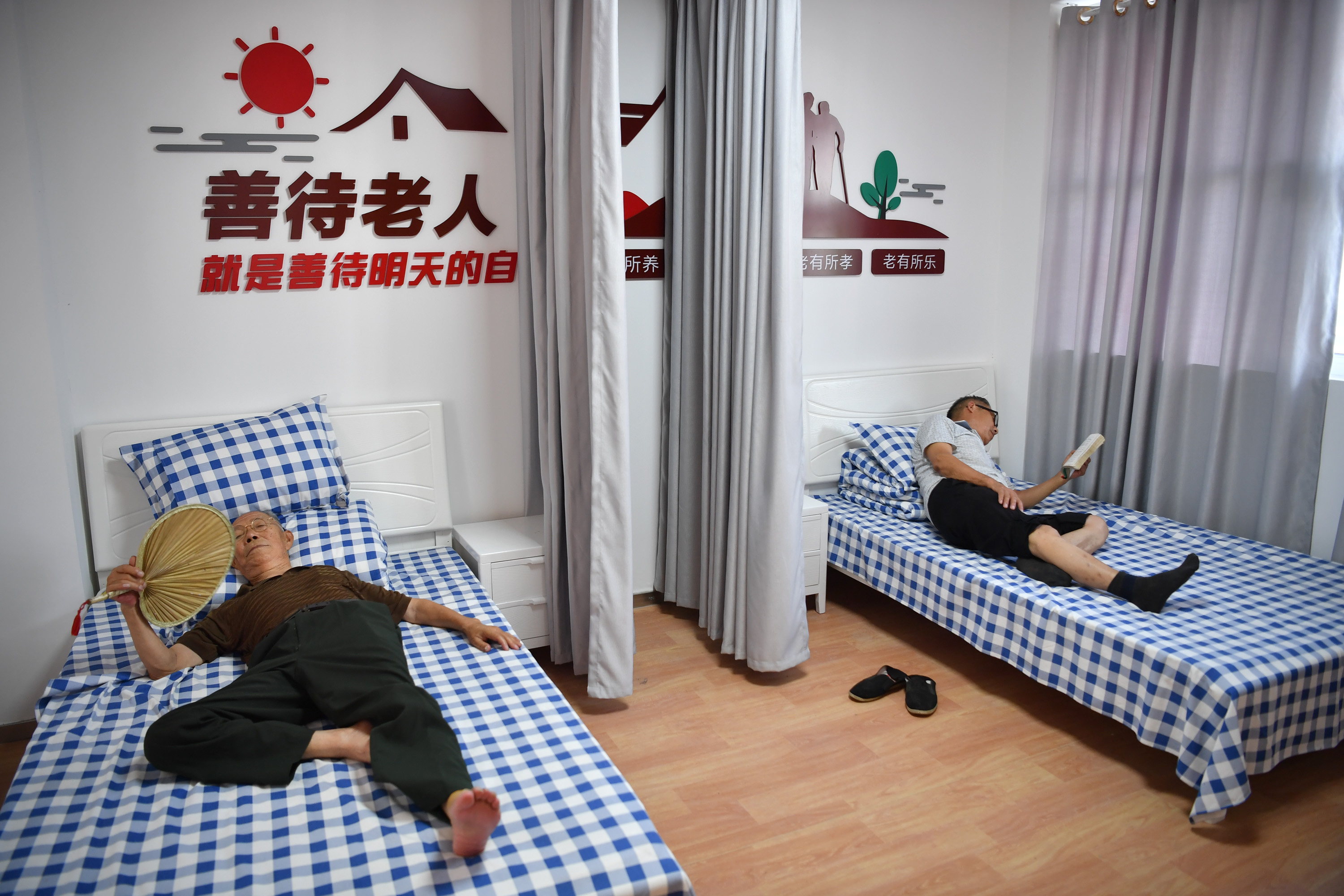 兩位老人在陜西省平利縣老縣鎮(zhèn)錦屏社區(qū)老年人日間照料中心的房間內讀書休息。新華社記者 邵瑞攝