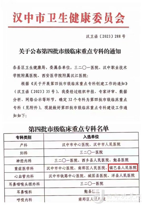 西部決策網(wǎng)訊 近日,漢中市衛(wèi)生健康委員會(huì)公布了第四批市級(jí)臨床重點(diǎn)學(xué)科名單,鎮(zhèn)巴縣人民醫(yī)院重癥醫(yī)學(xué)科被授予市級(jí)臨床重點(diǎn)學(xué)科,標(biāo)志著該院重癥醫(yī)學(xué)科在資金投入、人才培養(yǎng)、基礎(chǔ)建設(shè)等方面邁上了新的臺(tái)階。截止目前,醫(yī)院擁有4個(gè)市級(jí)臨床重點(diǎn)專科。