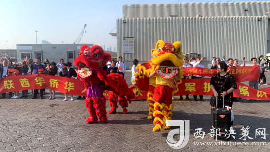 編隊(duì)海軍官兵跟各界人士,親切互動(dòng)。阿聯(lián)酋龍城商會(huì)送上陜西彬州蘋果慰問子弟兵。
