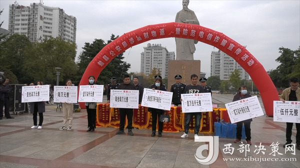 西部決策網(wǎng)訊 為有效震懾違法犯罪分子的囂張氣焰,展示公安機(jī)關(guān)打擊違法犯罪的工作成效,10月31日,勉縣公安局在三國(guó)文化廣場(chǎng)舉行涉案財(cái)物集中返還大會(huì)。大會(huì)由公安局黨委委員、刑警大隊(duì)長(zhǎng)楊曉主持,局黨委副書記、政委付根深,政法委綜治辦主任賀特剛,局黨委委員、副局長(zhǎng)余洪波出席活動(dòng)。