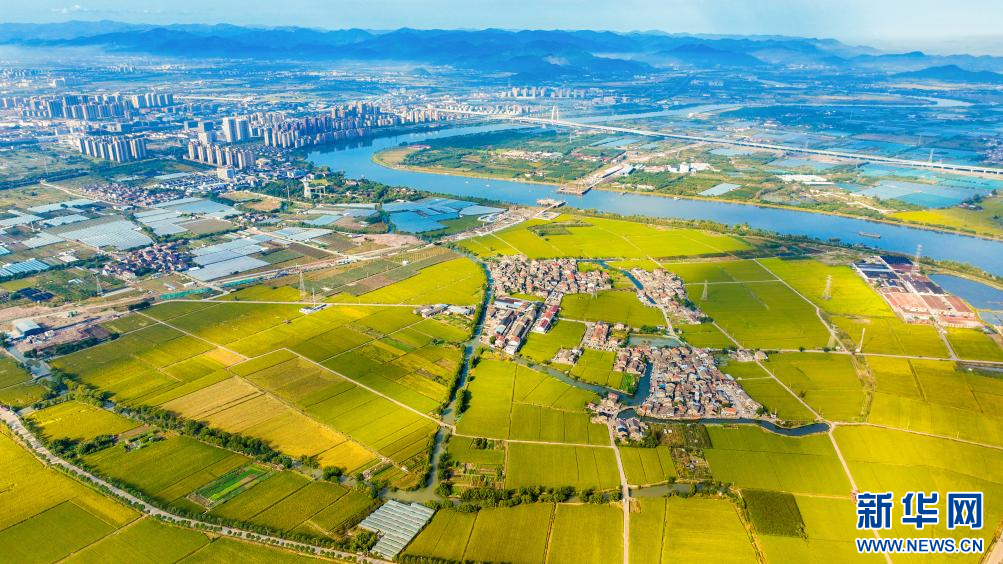近日,浙江省寧波市海曙區(qū)高橋鎮(zhèn)望江村1280畝晚稻進入成熟期。俯瞰鄉(xiāng)村,村落鑲嵌在金黃色的稻田中,秋日“豐”景,美不勝收。