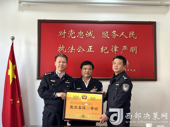 西部決策網(wǎng)訊(記者帥華鋒 通訊員 楊曉毅)11月2日,寶雞市公安局黨委副書記、常務(wù)副局長郭掌偉在市局政治部組教處處長關(guān)林虎陪同下,為榮立集體二等功的金臺分局一線送獎。分局在家的黨委班子成員及部分警種部門主要負(fù)責(zé)人參加授獎儀式。