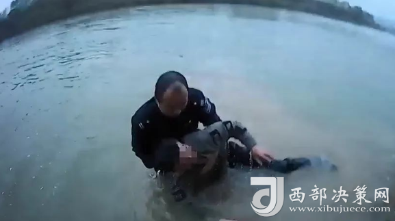 到達(dá)現(xiàn)場(chǎng)附近,民警遠(yuǎn)遠(yuǎn)看見該男子在河中沉浮,離岸邊越來越遠(yuǎn),時(shí)間就是生命,救援迫在眉睫!近日降溫,河水冰冷刺骨,在這危急關(guān)頭,民警孟建華沒有絲毫猶豫,立即沖下河堤,向生命飛奔,途中摔倒蹭破膝蓋、手掌,他全然不顧;到了岸邊他甩掉帽子,卸下裝備,沒有絲毫猶豫,果斷跳入危險(xiǎn)莫測(cè)的河中開展救援。
