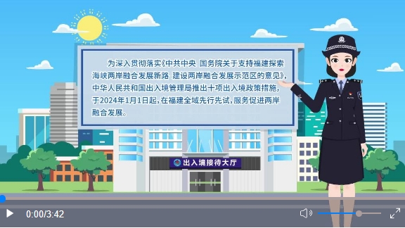 在便利臺胞往來方面,實行臺灣居民來往大陸通行證(以下簡稱“臺胞證”)“網上辦”“口岸辦”“集中辦”,辦證方式更加便捷,辦證渠道更加豐富,臺胞來閩實現“想來即來”;推動在廈門設立出入境證件制作中心,廈金、福馬“同城生活圈”人員辦理出入境證件時限由7個工作日縮短至5個工作日。