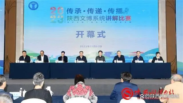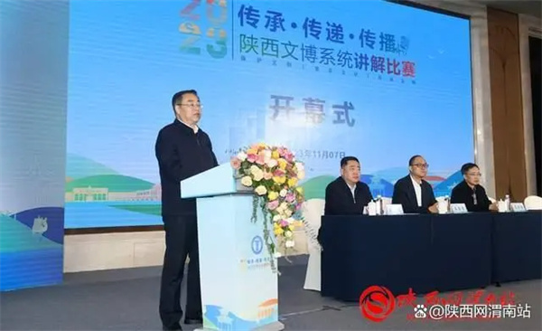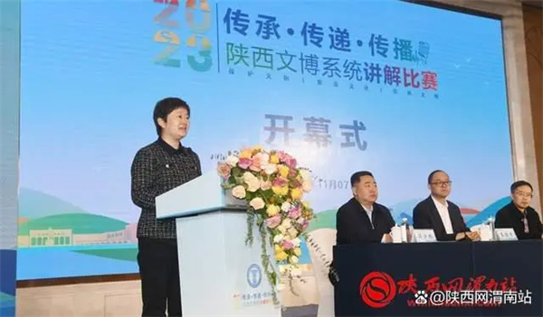 11月7日,由陜西省文物局主辦,渭南市文化和旅游局、渭南市博物館、陜西省博物館協(xié)會(huì)承辦的“傳承·傳遞·傳播——2023年陜西文博系統(tǒng)講解比賽”在渭南開幕。陜西省文物局副局長(zhǎng)賈強(qiáng)、渭南市副市長(zhǎng)劉莉參加開幕式并致辭。陜西省博物館協(xié)會(huì)副會(huì)長(zhǎng)譚前學(xué)、陜西省文物局二級(jí)巡視員王金青、陜西省文物局革命文物處處長(zhǎng)薛少鵬、陜西省文物局博物館與社會(huì)文物處(科技處)副處長(zhǎng)李娟、渭南市政府副秘書長(zhǎng)楊立鵬、渭南市文化和旅游局局長(zhǎng)劉會(huì)軍等參加開幕式。