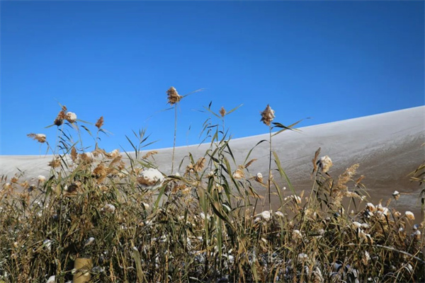 雪后的鳴沙山成一片雪海,白茫茫的沙丘和若隱若現(xiàn)的沙脊線,與泉水形成了獨特的冰雪奇觀,給人一種純凈、靜謐的感覺。今冬,一定不要錯過鳴沙山的雪景,看潔白的霜花綴滿枝頭,體驗如詩如畫的人間仙境,感受這片恰似與世隔絕的自然美景?。ㄓ浾邘浫A鋒 通訊員 田雅杰)