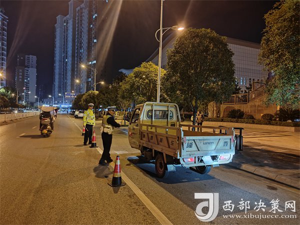西部決策網(wǎng)訊 為扎實(shí)推動(dòng)“控大歸零”戰(zhàn)訓(xùn)行動(dòng)深入開展,最大限度整合警力資源,11月15日晚,漢中市西鄉(xiāng)縣公安局交警大隊(duì)組織古城、茶鎮(zhèn)中隊(duì)在城區(qū)集中開展了夜查整治聯(lián)合行動(dòng),連續(xù)查處無證、飲酒駕駛等嚴(yán)重交通違法行為。