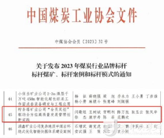 西部決策網訊 11月9日,中國煤炭工業(yè)協錨點會發(fā)布2023年煤炭行業(yè)品牌標桿、標桿煤礦、標桿案例和標桿模式,陜煤集團神木檸條塔礦業(yè)有限公司《“全員雙創(chuàng)”驅動全方位高質量發(fā)展管理創(chuàng)新實踐》獲評2023年煤炭行業(yè)標桿案例。