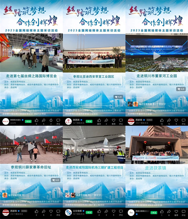 圍繞此次活動,西部網攜手全國網絡媒體共同上線《“絲路筑夢想 合作創(chuàng)輝煌”|2023全國網絡媒體主題采訪活動》專題,采訪團采訪絲博會開幕式、絲博會特色展館、陜西汽車控股集團有限公司、西安高新區(qū)絲路科學城等活動進行滾動報道,集中宣傳我省重點產業(yè)、特色產品、科技創(chuàng)新成果及建設的新成就、新形象。