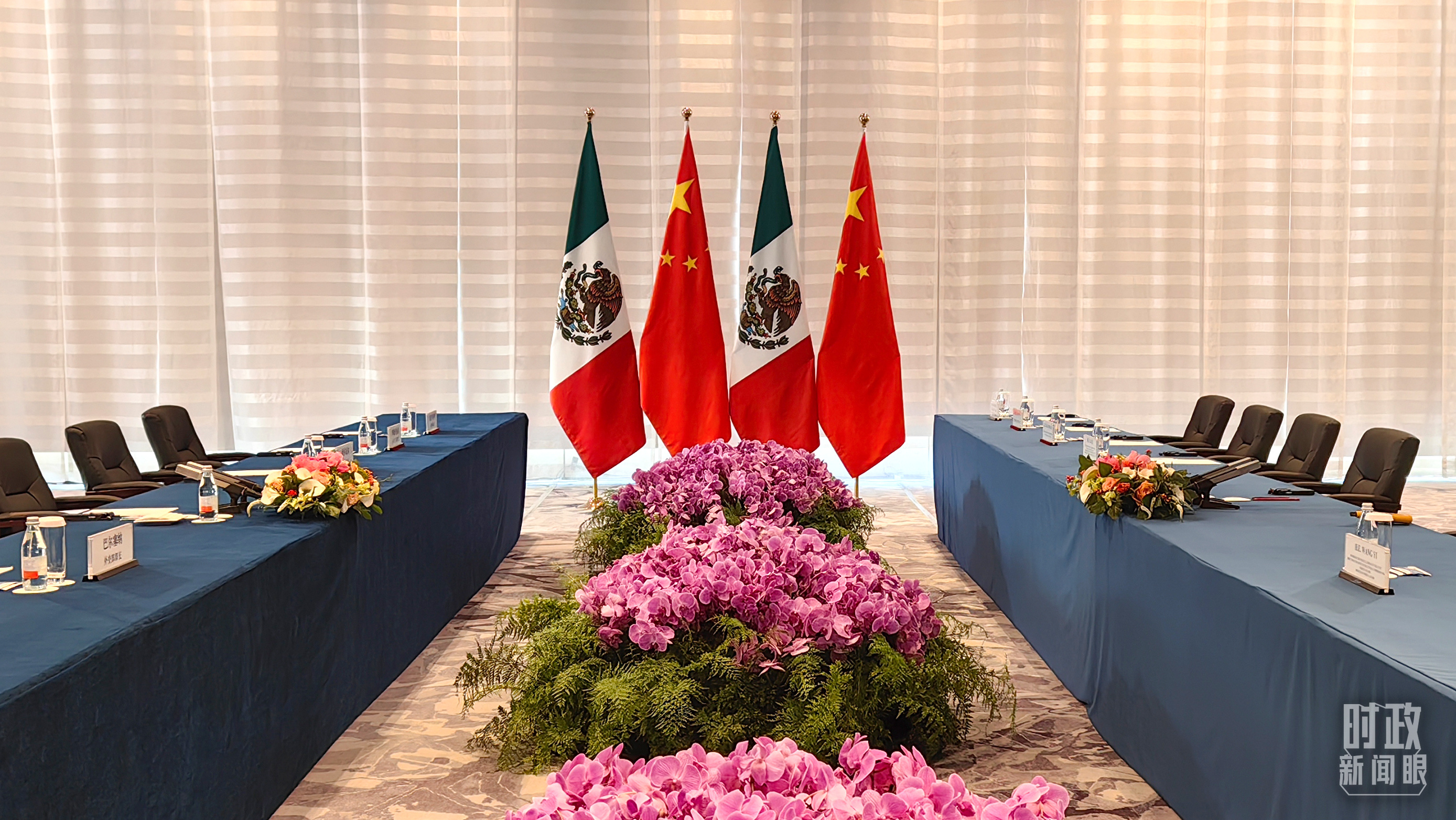 △中墨兩國會談開始前的現(xiàn)場。(總臺央視記者楊波拍攝)