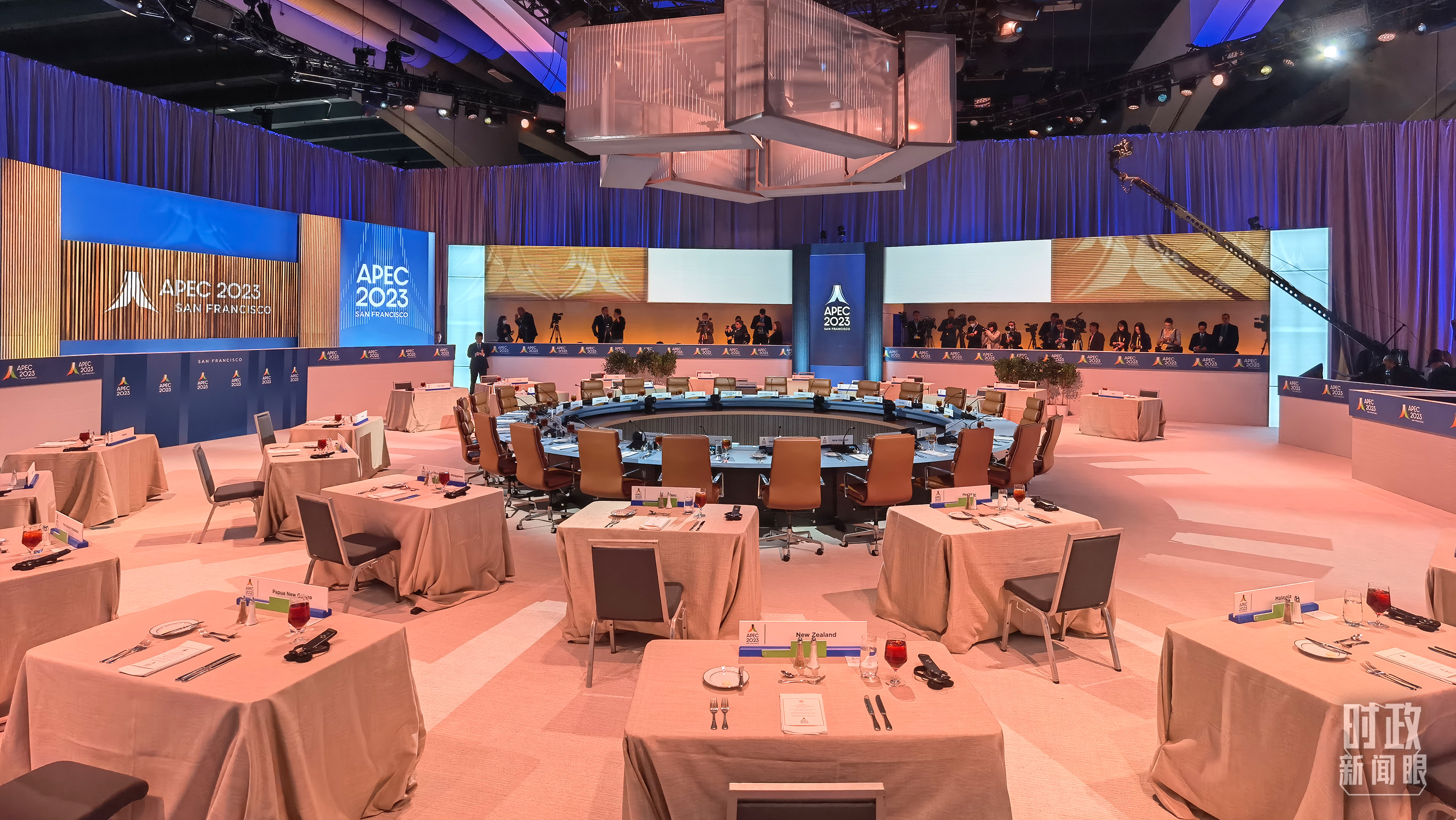 △16日,APEC領(lǐng)導(dǎo)人同東道主嘉賓在對話會前集體合影,圖為記者們在等待合影開始。(總臺央視記者石偉明拍攝)