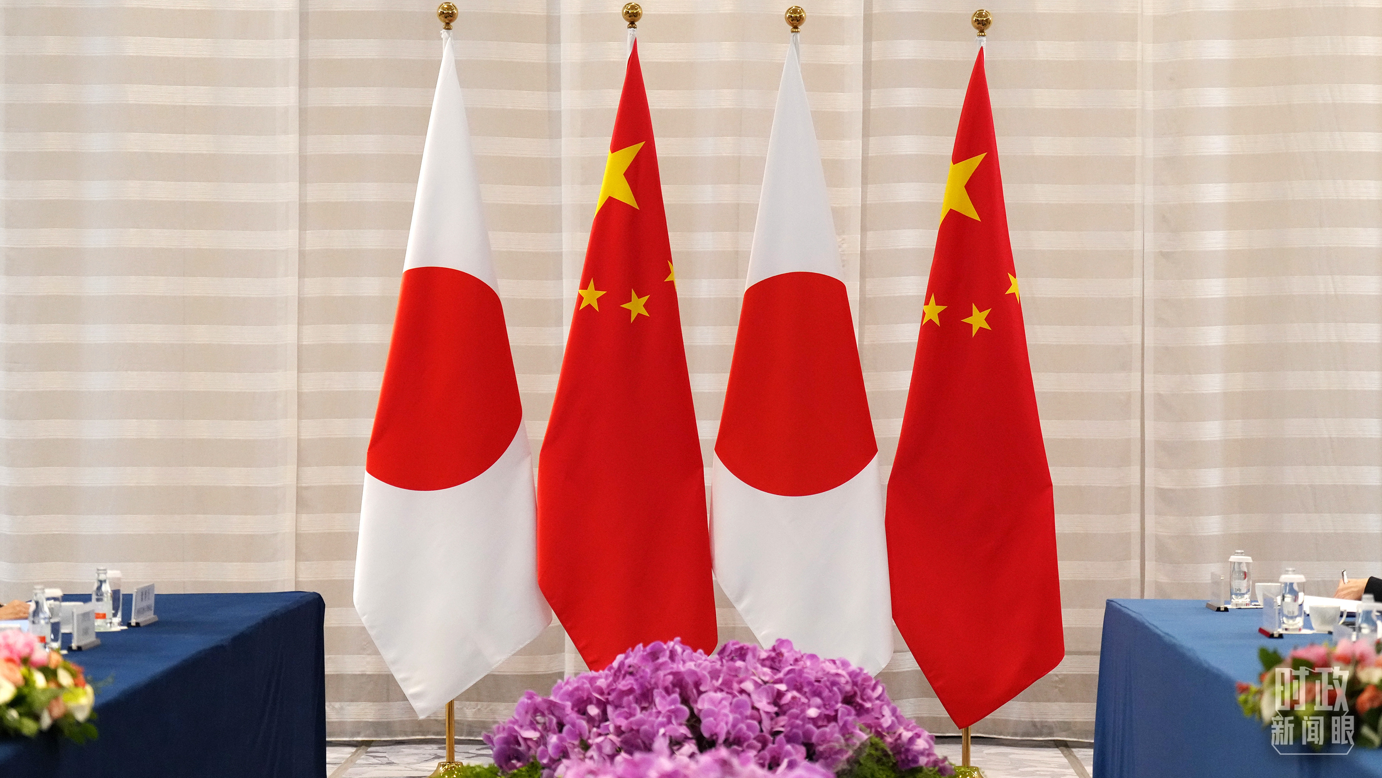 △會談現(xiàn)場的中日兩國國旗。(總臺國廣記者李晉拍攝)