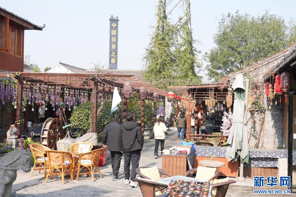 11月14日午后,在涇河新城茯茶鎮(zhèn),游客們逛茯茶鎮(zhèn)商業(yè)街。新華網(wǎng) 楊喜龍 攝