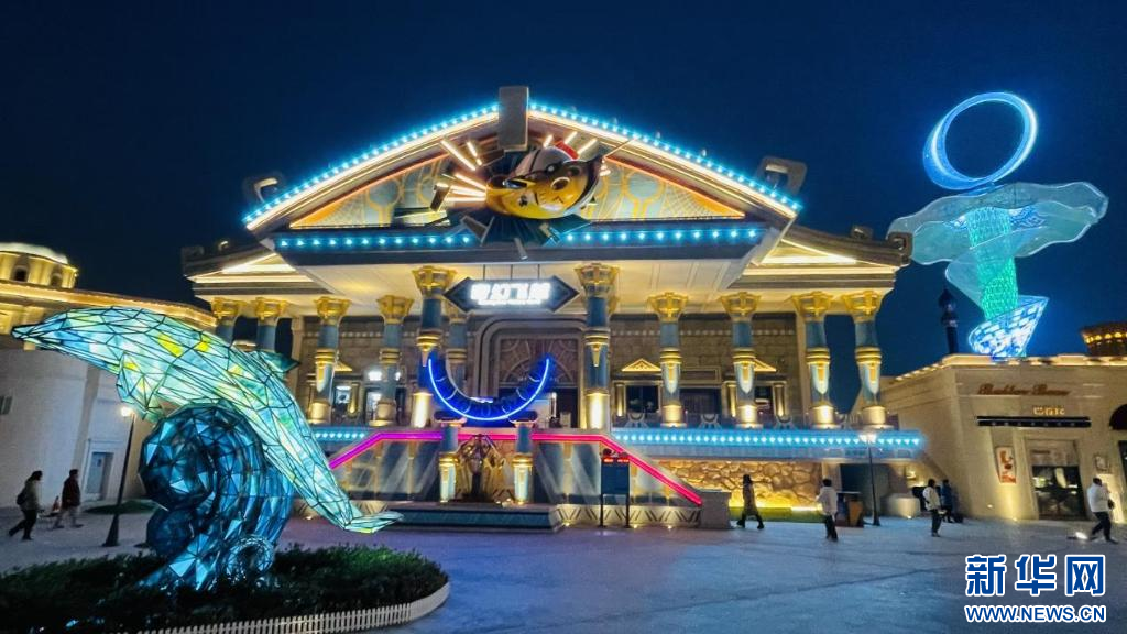 11月14日傍晚,在“絲路歡樂(lè)世界”,游客們前往“奇幻飛越”場(chǎng)館體驗(yàn)娛樂(lè)項(xiàng)目。新華網(wǎng) 楊喜龍 攝