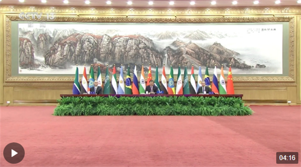 習(xí)近平強(qiáng)調(diào),金磚合作機(jī)制是新興市場(chǎng)國(guó)家和發(fā)展中國(guó)家加強(qiáng)團(tuán)結(jié)合作、維護(hù)共同利益的重要平臺(tái)。今天,我們就巴以問(wèn)題協(xié)調(diào)立場(chǎng)、采取行動(dòng),為擴(kuò)員后的“大金磚合作”開(kāi)了個(gè)好頭。中方愿同其他成員一道,開(kāi)創(chuàng)金磚合作新時(shí)代。