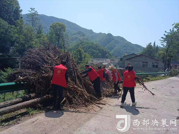 鄉(xiāng)村公益性崗位保潔員在清理道路、河道環(huán)境衛(wèi)生