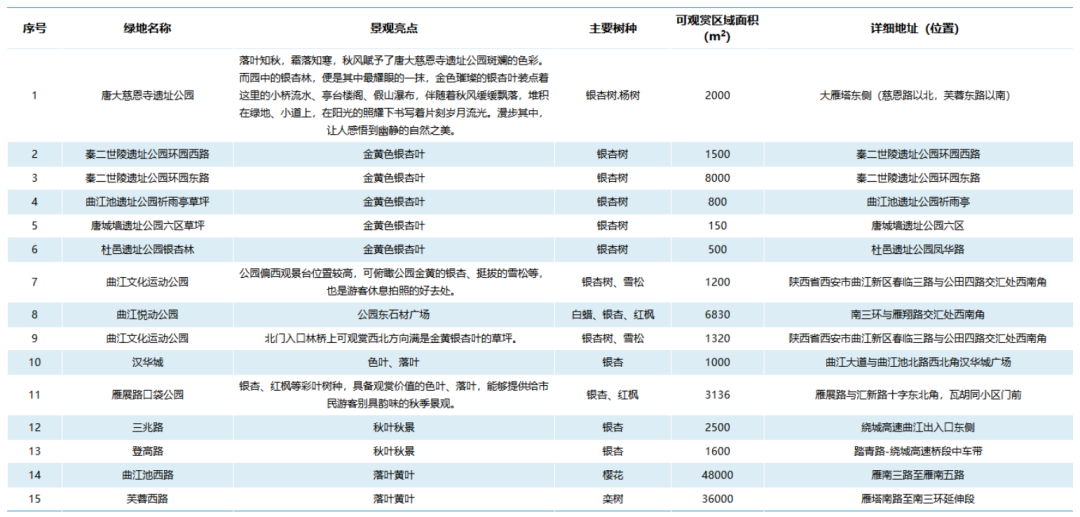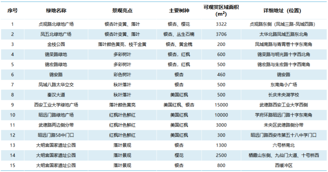附西安“落葉緩掃、留住秋景”點(diǎn)位: