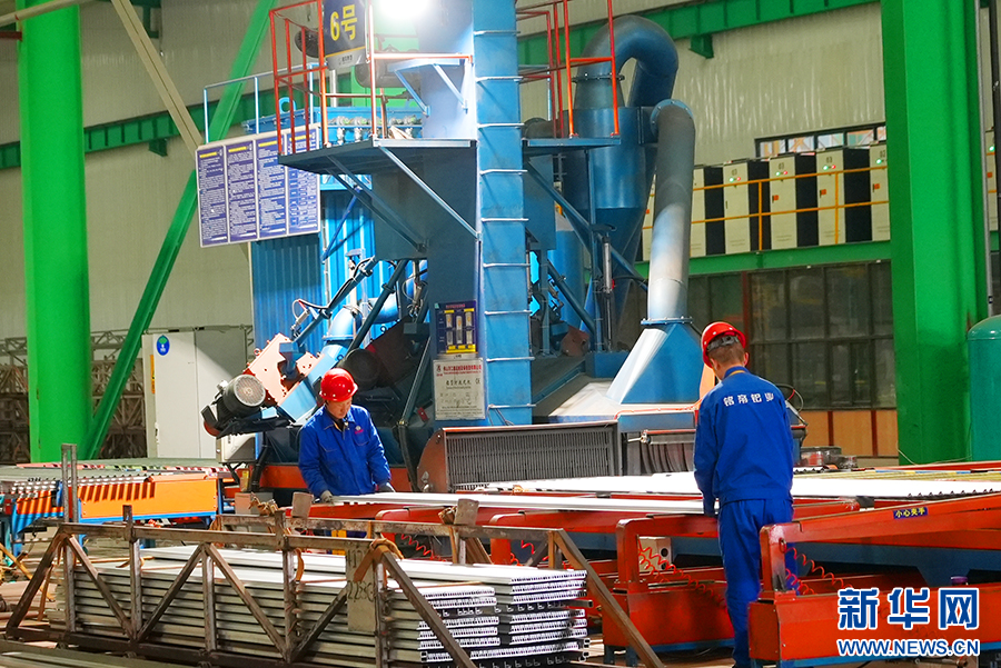 11月15日,在銅川市董家河循環(huán)經濟產業(yè)園,銘帝集團有限公司鋁合金生產車間里兩名工人正在工作。新華網 楊喜龍 攝
