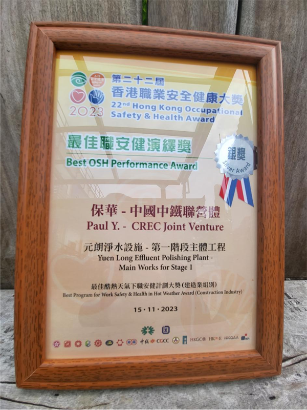 近日,由香港特別行政區(qū)職業(yè)安全健康局舉辦的“第二十二屆香港職業(yè)安全健康大獎分享會暨頒獎典禮”在香港會議展覽中心舉行,大獎通過嘉許致力推行工作安全及健康措施的機構,提高各界的職安健表現(xiàn)。會上,由中鐵一局一公司參與承建的香港元朗凈水設施——第一階段主體工程項目喜獲建造業(yè)組別“最佳酷熱天氣職安健計劃大獎——金獎”“最佳職安健演繹獎——銀獎”兩項大獎。