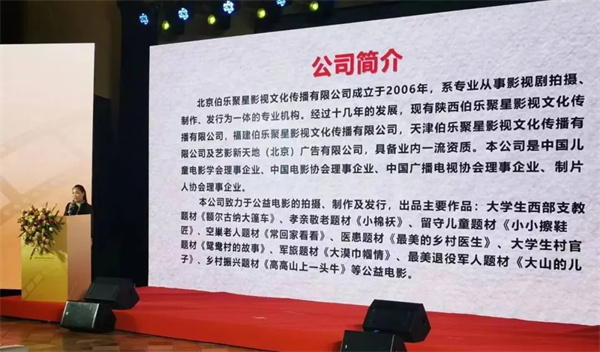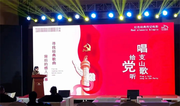 伯樂聚星影視董事長,該片總出品人、總制片人高秀云受邀出席推介會,并登臺向領導及眾來賓隆重介紹電影《唱支山歌給黨聽》。