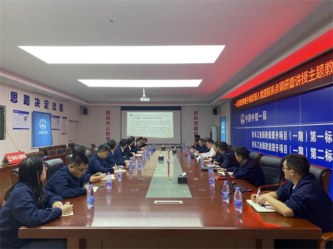 12月5日,中鐵一局一公司副總經(jīng)理李勇到佛山片區(qū)項目調(diào)研,并為黨員講授主題教育專題黨課。公司人力資源部(黨委干部部、黨委組織部)副部長伍妮妮,佛山片區(qū)項目領導班子、全體黨員共計30余人參加。