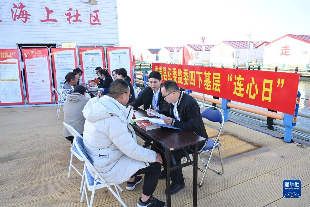 2023年11月18日,寧德市霞浦縣紀(jì)委監(jiān)委工作人員在溪南鎮(zhèn)七星海上社區(qū)接訪。新華社記者 姜克紅 攝