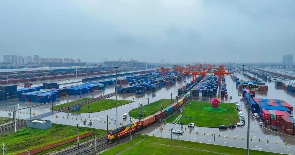 △2023年9月28日,中歐班列長(zhǎng)安號(hào)第20000列從陜西西安國(guó)際港站開(kāi)出。