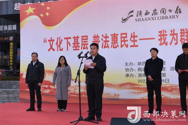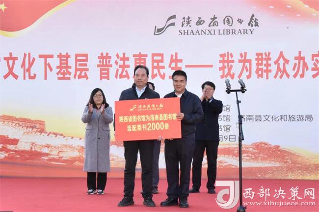 西部決策網(wǎng)訊 12月9日,由陜西省圖書館主辦,商洛市圖書館、洛南縣文化和旅游局、縣圖書館承辦的“文化下基層 普法惠民生——我為群眾辦實(shí)事”主題活動(dòng)在洛南縣舉行。陜西省圖書館黨委書記、館長周云岳,中共洛南縣委常委、宣傳部長郭民成,陜西省律師協(xié)會民事專業(yè)委員會主任劉曉恩,商洛市圖書館館長彭萍莉,洛南縣文化和旅游局局長劉濤,縣司法局副局長楊娟,縣圖書館館長楊新鋒等有關(guān)領(lǐng)導(dǎo),陜西省圖書館第三黨支部黨員代表及社會各界等300余人參加。活動(dòng)啟動(dòng)儀式由劉濤主持。