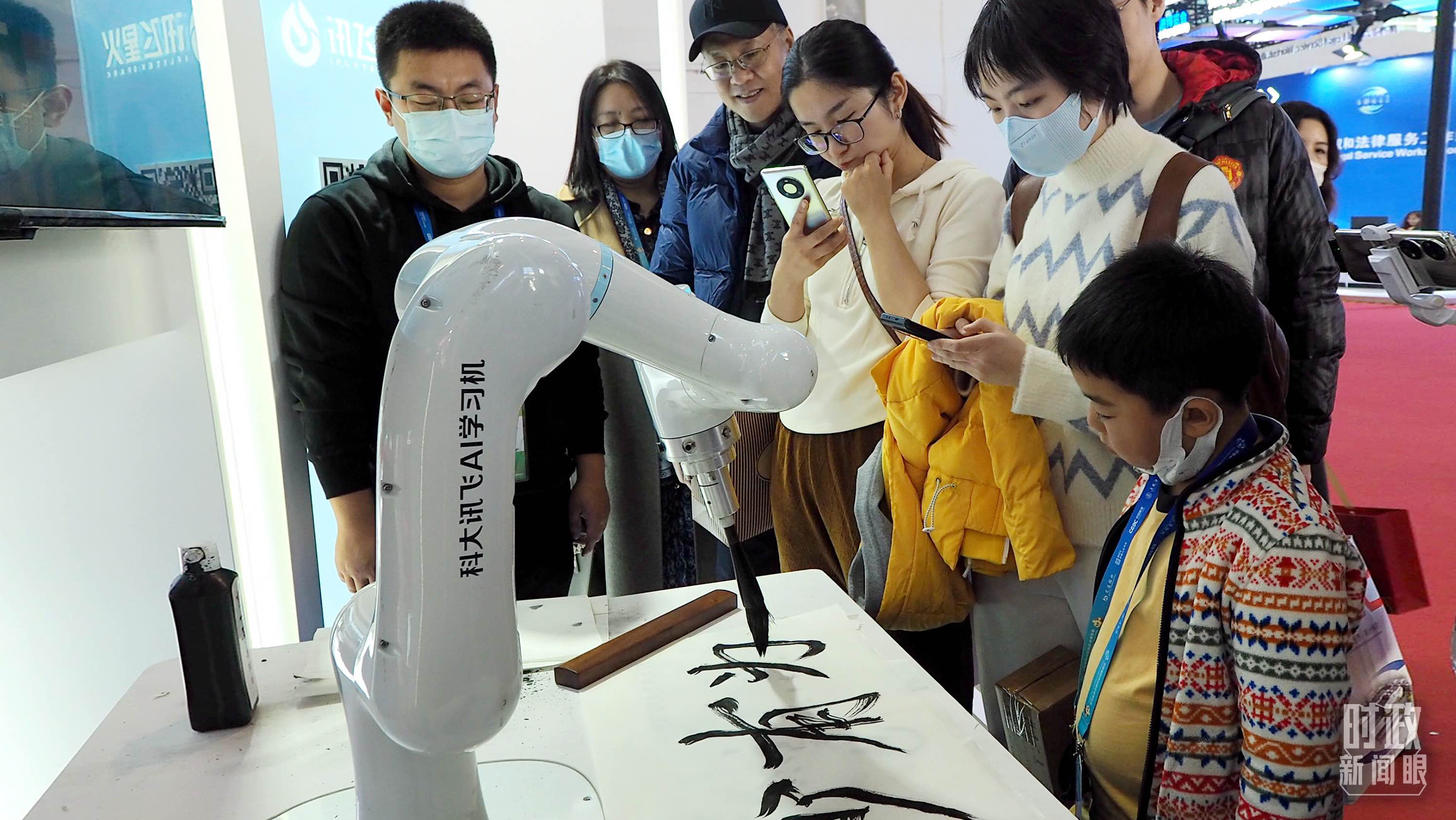 △觀眾在首屆鏈博會(huì)上體驗(yàn)AI書法機(jī)器人。(圖/視覺中國)