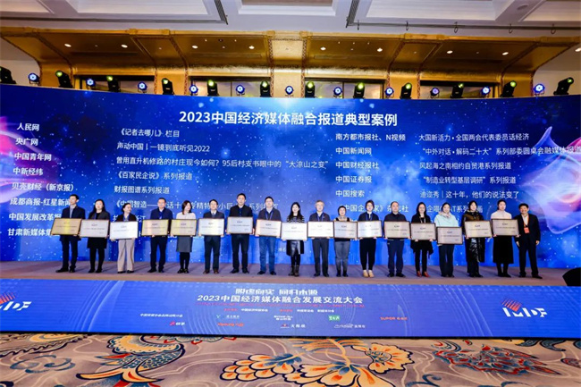 大會現(xiàn)場,中國經(jīng)濟(jì)傳媒協(xié)會會長趙健、副會長杜躍進(jìn),分別為“2023中國經(jīng)濟(jì)媒體融合報(bào)道典型案例”“2023中國經(jīng)濟(jì)媒體應(yīng)用創(chuàng)新典型案例”頒獎(jiǎng)。